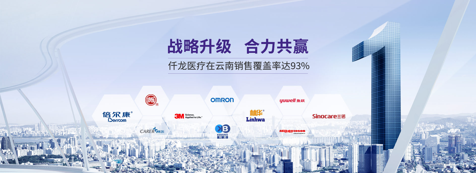 Industry operation云南仟龍是3M中國、上海科邦、江蘇魚躍、三諾生物等企業(yè)云南總代理 所經(jīng)營的醫(yī)療用品均具備三證證書、產(chǎn)品合格證、產(chǎn)品代理資格證等 正規(guī)注冊的醫(yī)療耗材品牌廠家少,產(chǎn)品替代性低,更具市場競爭力